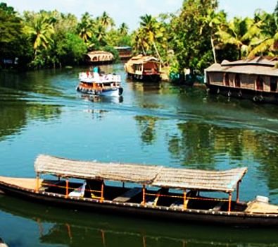 The backwaters of Kerala a network of lakes, canals, estuaries and delta's of 44 rivers that flows into the Arabian Sea from the Western Ghats are a unique contribution of Kerala to the world . Throughout the coastal areas of Kerala backwaters are endless stretches of lakes, lagoons and ponds connected by a network of canals. The Kerala backwater routes date back over the centuries and have been long used for all transportation needs, in particular trade in coconut, rubber and spices. Today, these waterways link remote villages and islands to the mainland and nerve centers of the coastal area. They also form an ideal highway for the thatched roof houseboats of Kerala, a colorful and unique navy of floating hotel suites, suitable for cruising the backwaters in sybaritic decadence.